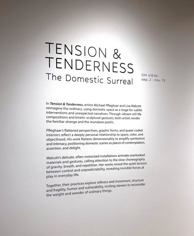 In Tension & Tenderness, artists Michael Pfleghaar and Lisa Walcott re-imagine the ordinary, using domestic space as a stage for subtle interventions and unexpected narratives. Through vibrant still life compositions and kinetic sculptural gestures, both artists render the familiar strange and the mundane poetic.