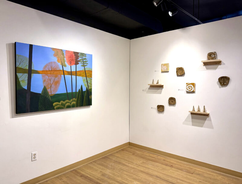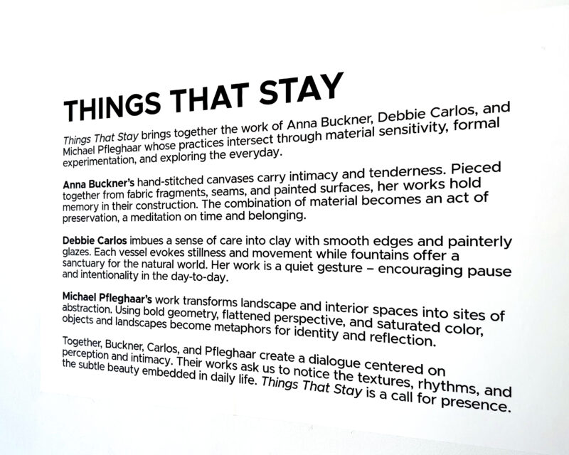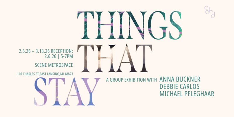 Installation views of the Things That Stay exhibition with artists Anna Buckner and Debbie Carlos at Scene Metrospace in Lansing.